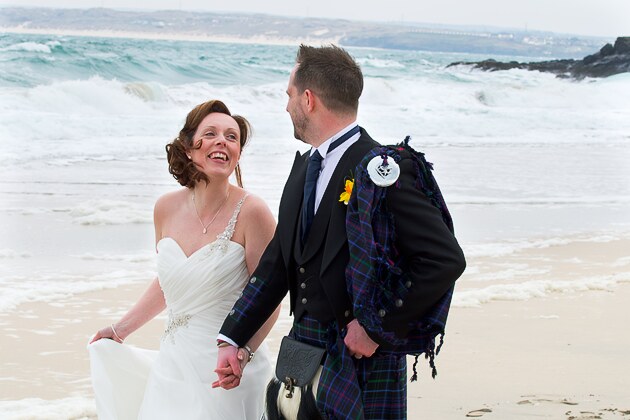 Plenty of waves and white water on Porthminster beach for shots of the bride and groom. For most couples photographs on a beach are a pre-requisite especially when you've travelled from out of the county.
